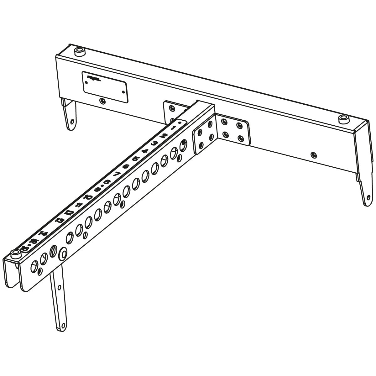 Flybar for AX2065 and SW215F with adjustable single Pickup point. 3 x M10 feet inserts for ground stacked use in upside down position (feet not included).
