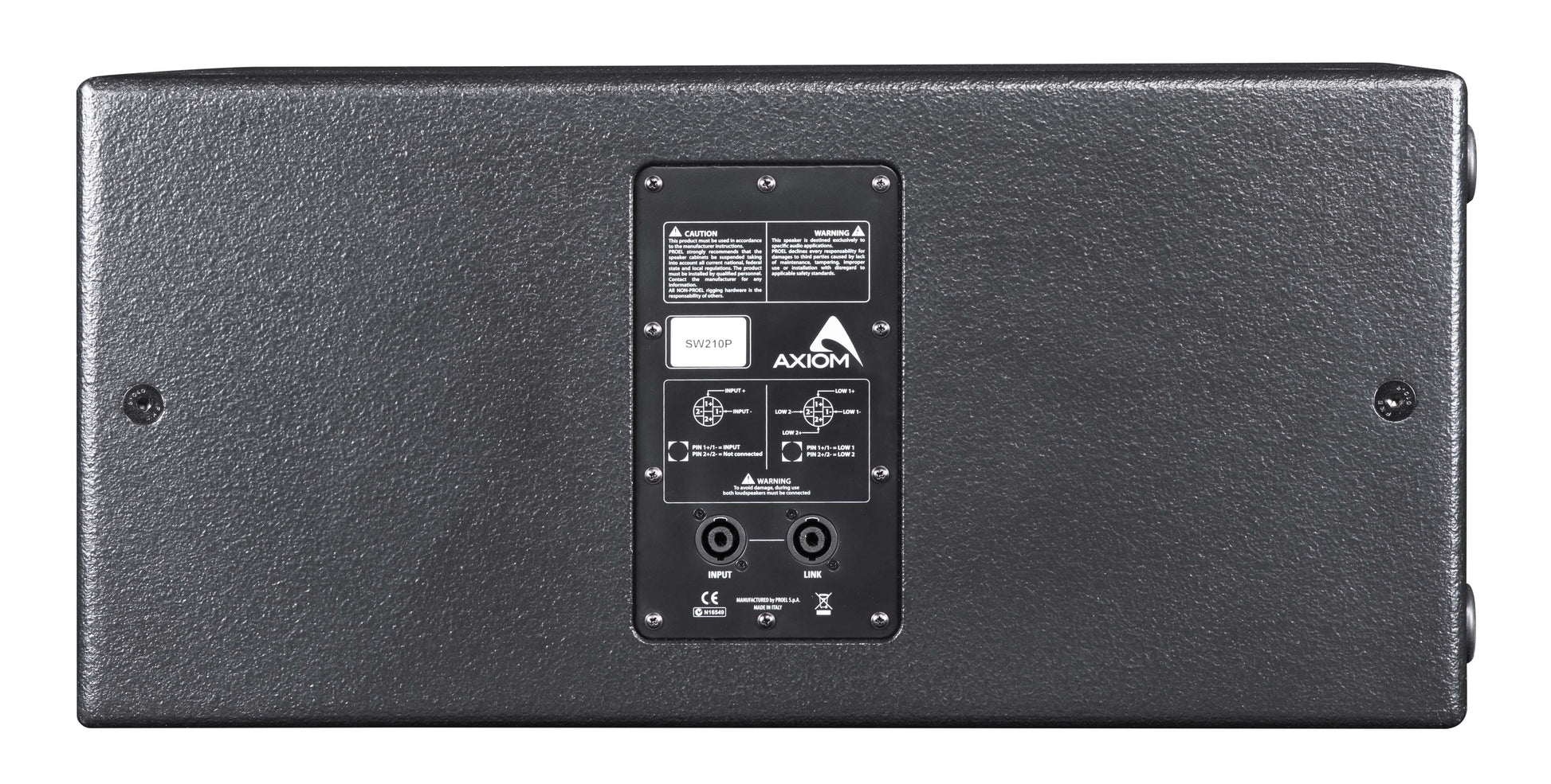 The 10” low frequency transducers are equipped with waterproof cones and this feature, together with the moisture resistant cabinet, makes the SW210P suitable for use in light duty outdoor applications. The transducer technology combines a 3” sandwich voice coil with a fiberglass former progressive wave Konex spider; a cloth surround with DAR technology; a high excursion ferrite magnet circuit with demodulating ring; and a ventilated voice coil and magnet to reduce power compression.