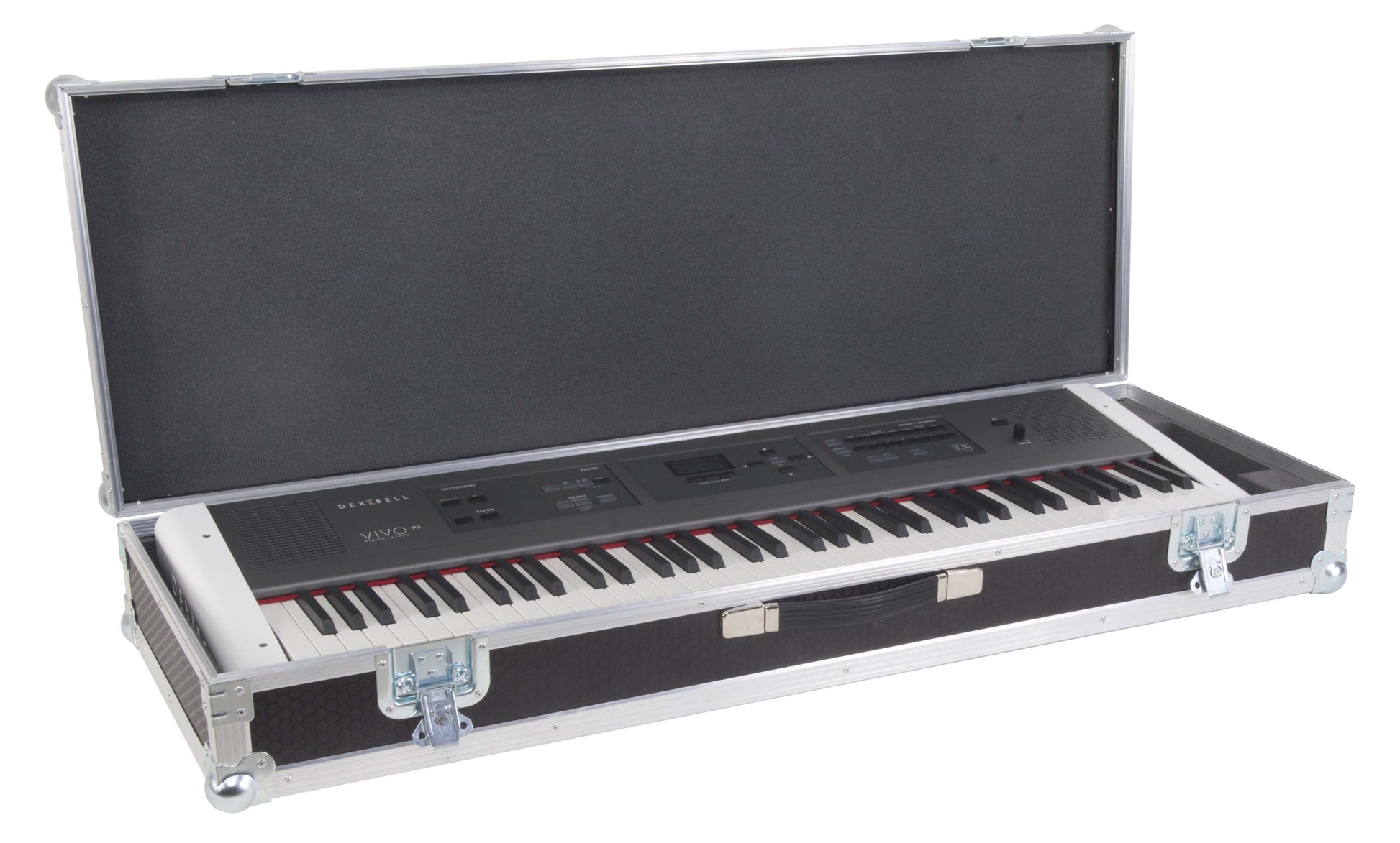 Dexibell professional wood touring gig case for 73-Key digital pianos. Professional flight case, made of 5-ply scratch-resistant marine plywood with 7mm thick phenolic gluing. The impermeability of the roof and the phenolic gluing of the plywood prevent any type of deformation deriving from humidity and make the case extremely resistant to high temperatures. It is equipped with high-voltage steel corners that protect the weakest points of the structure, and eliminate any contact between the body of the case and other surfaces. As an additional protection against impact and falls, high-density Ethafoam polyethylene is used as an internal protection which also has excellent thermal insulation qualities. Equipped with original aluminum profiles with a design that offers a perfect and long-lasting match. In addition, it features a reversible aluminum profile with an edge that ensures perfect alignment of the lid and an airtight seal. Equipped with medium steel hinges with a lid that allows a 90 degree opening and high quality built-in steel butterflies are used.