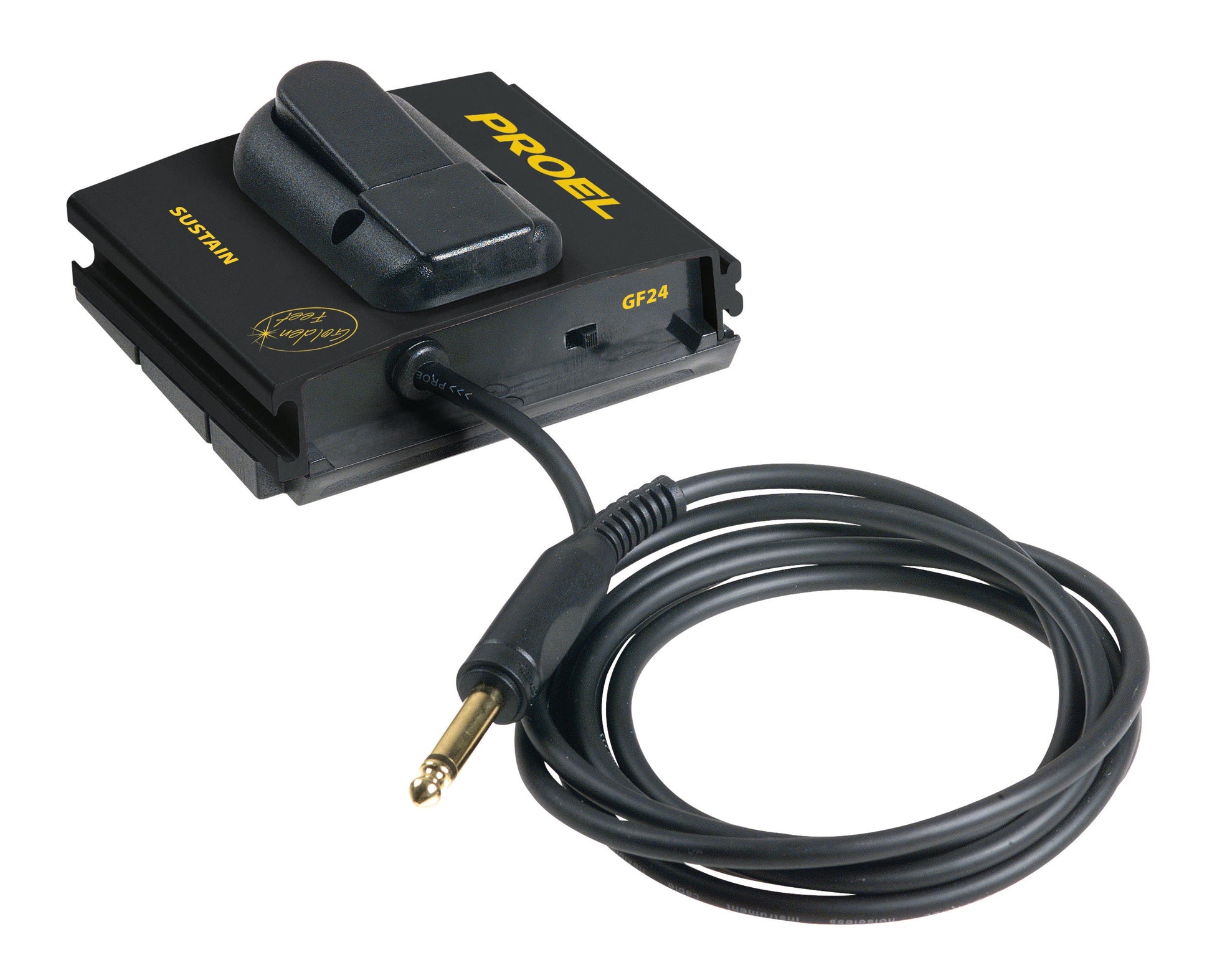 Golden Feet Series SUSTAIN control pedal with polarity inversion switch, heavy duty ABS/Aluminium with anti-skid feet and recessed slots, supplied with 2.00 mt lead terminated with mono jack male plug 6.3 mm.