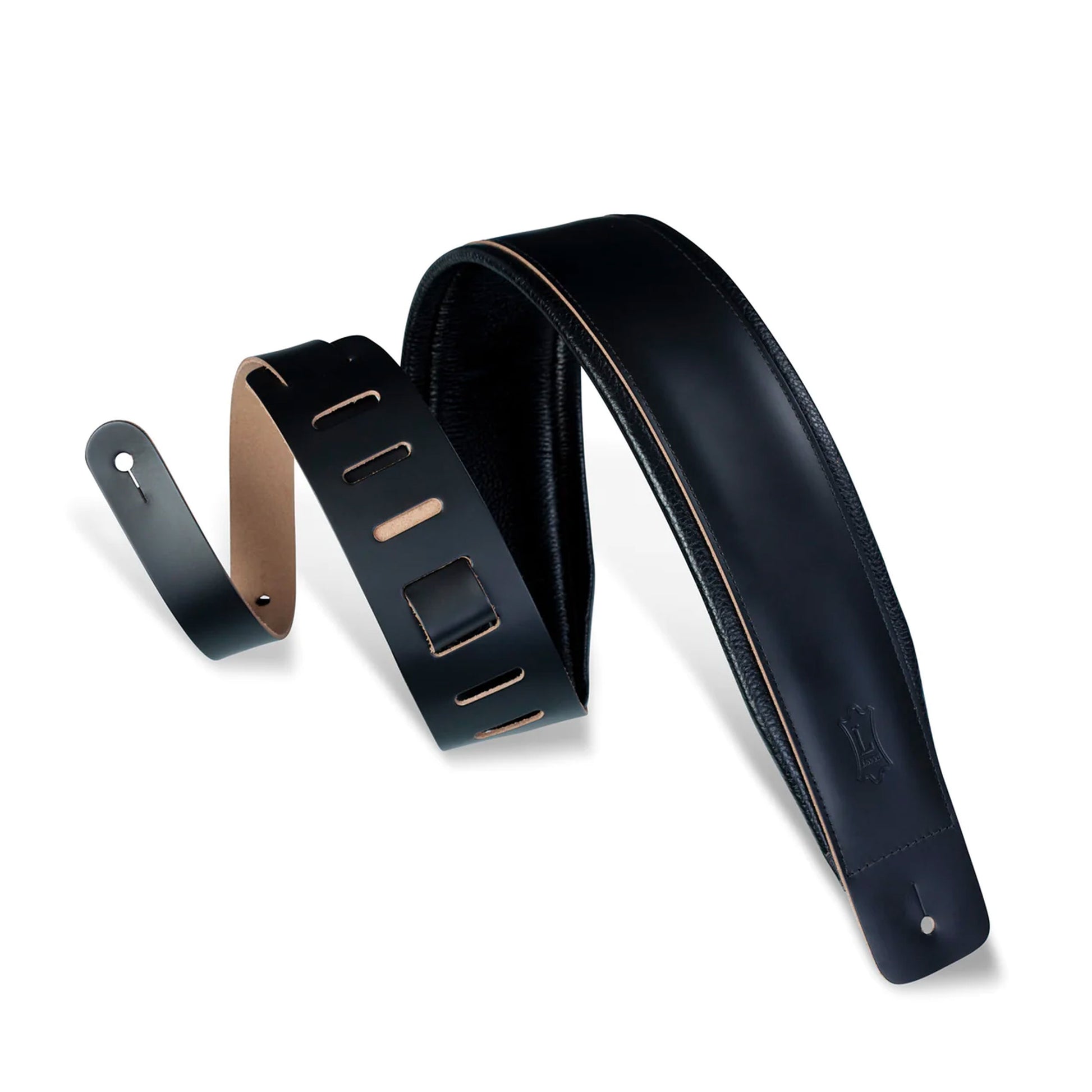 Levy's Leathers - DM1PD-BLK - 3" Leather Guitar Strap With Foam Padding And Garment Leather Backing. Adjustable From 37" To 50". Black Color