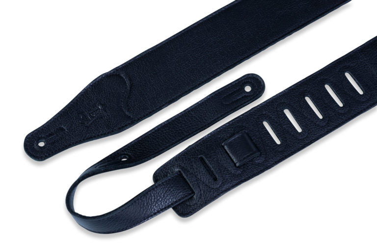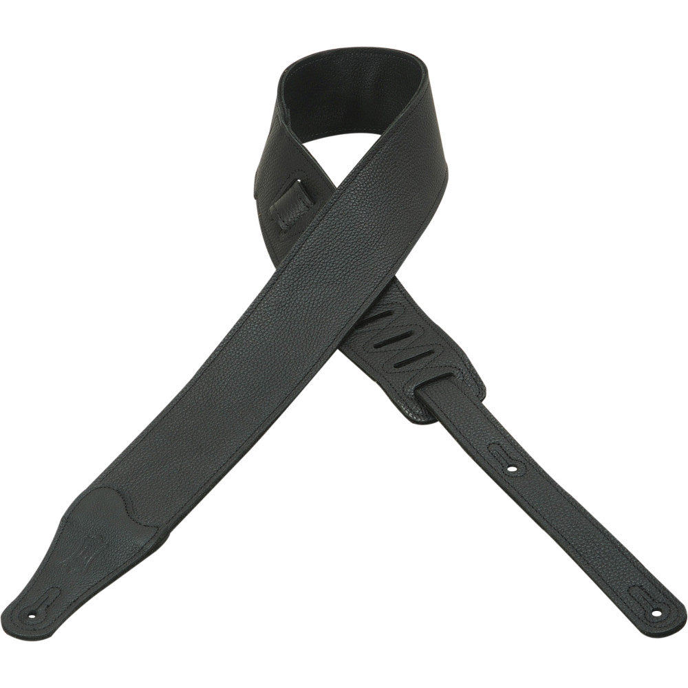 Levy's 2 1/2" wide black garment leather guitar strap.Adjustable to 55".Soft garment leather backing.Designed by Levy's industry leading fashion designers.