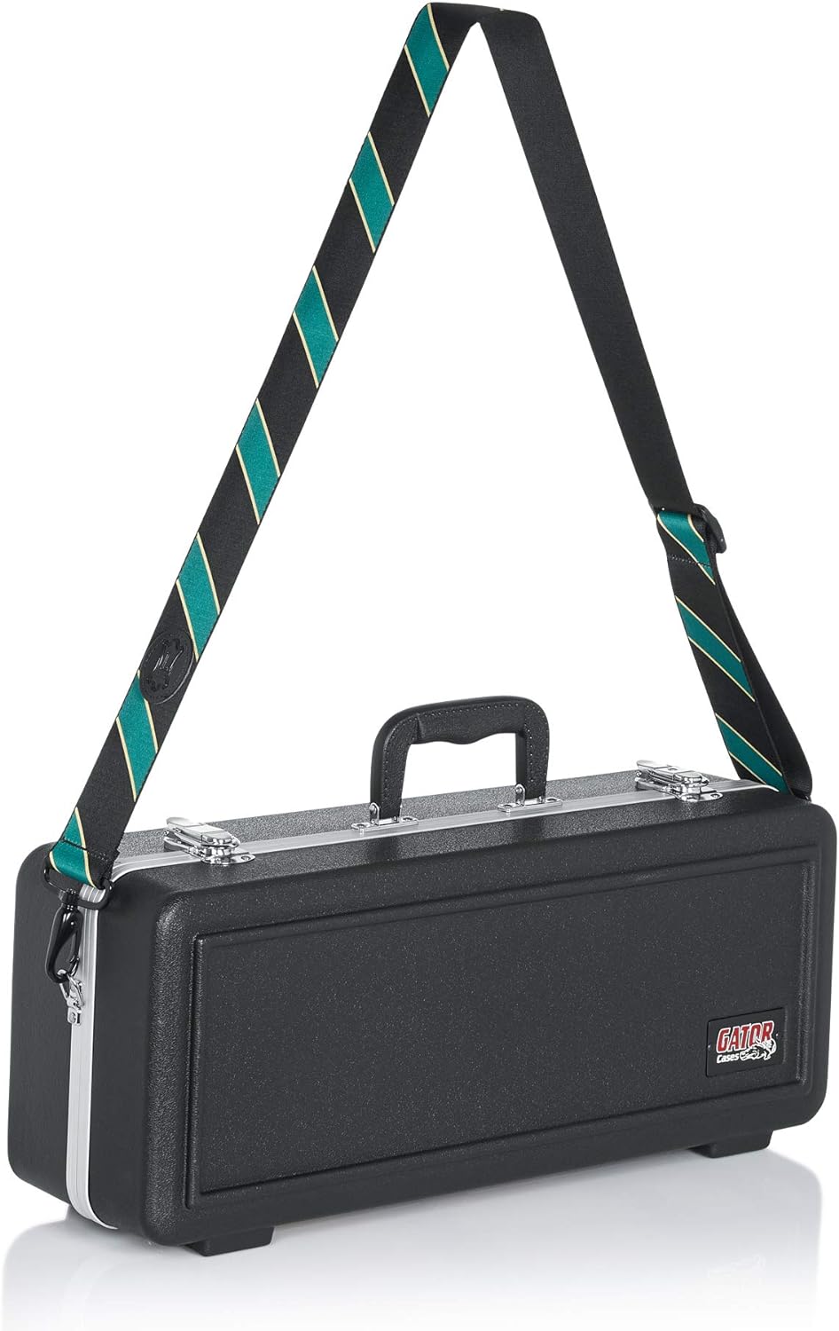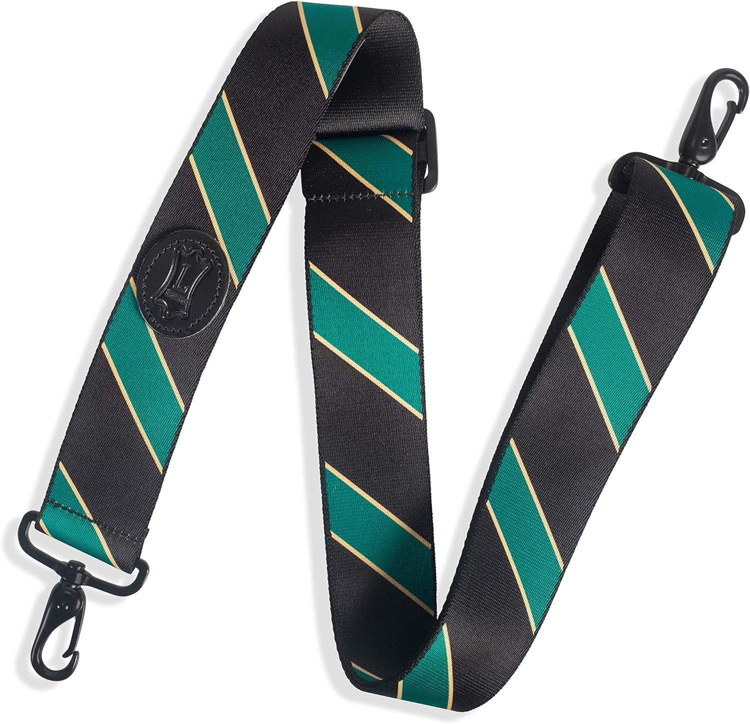 2 inch Wide Spirit Case Strap With Printed Black and Green Stripe Pattern and Levy's Black Signature Veg-Tan Oval. Black Metal Swivel Clip Hardware with Black Plastic Slide Adjusts From 35 to 60 inches. Case sold separately.