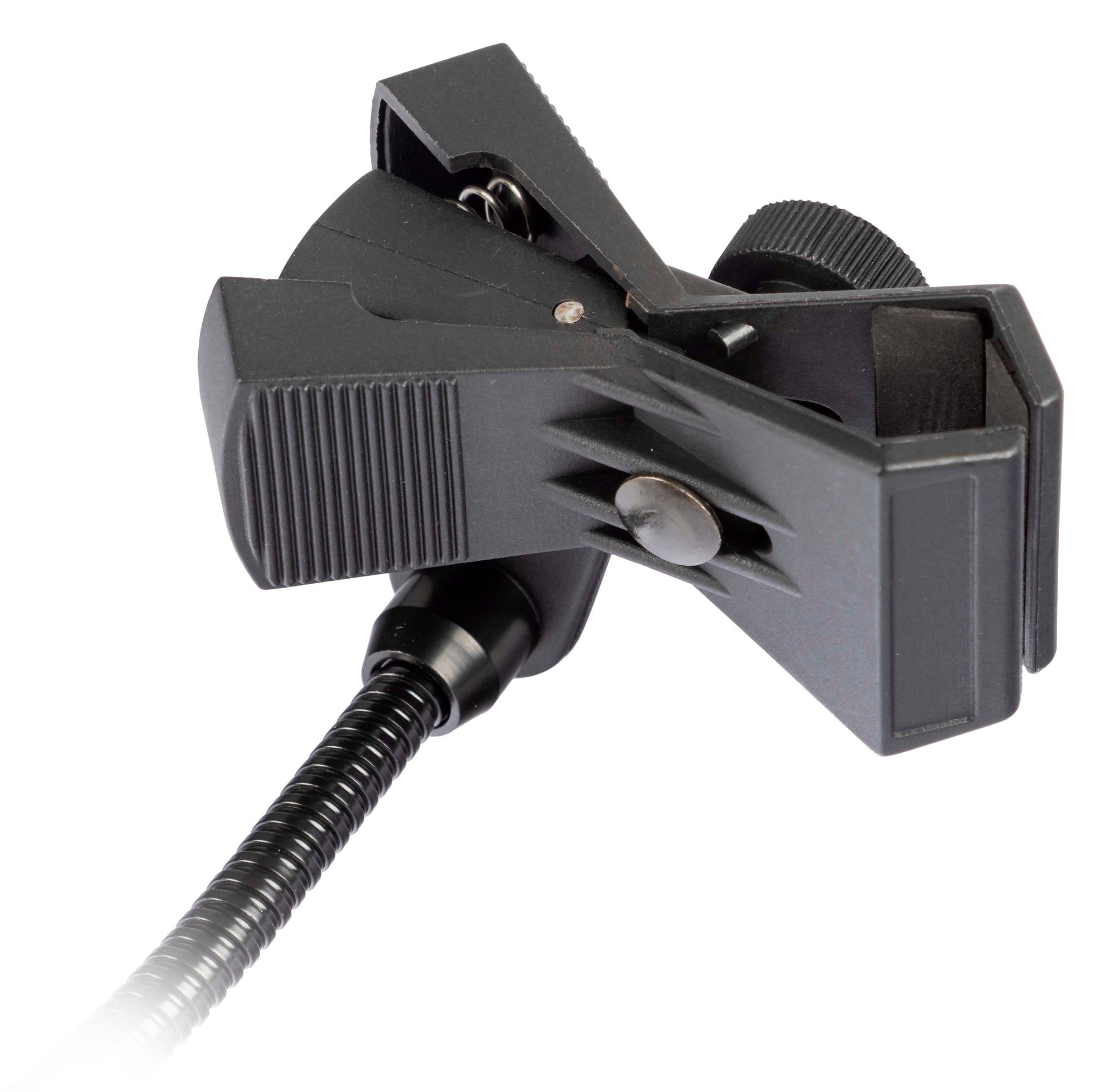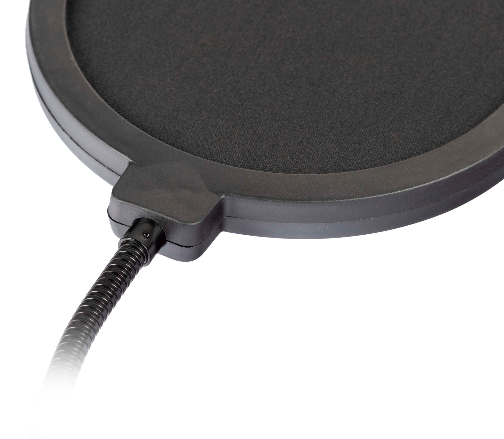 Dual-layer nylon screen pop filter, equipped with 32 cm (12.6 inches) length adjustable gooseneck. Filter diameter 155 mm (6.1 inches). Equipped with universal clamp for pipes from 17 up to 30 mm (0.67 to 1.18 inches) in diameter. Black color.