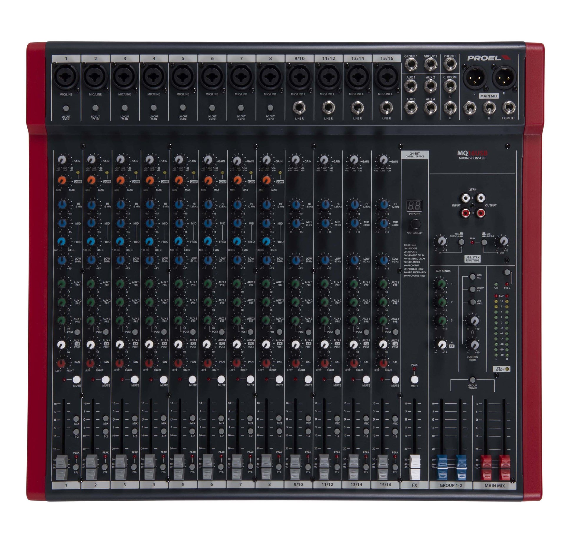 MQ is a series of mixers created by PROEL to offer in a very compact and stylish package a high input density, a full set of features and a superior audio quality, at a very convenient price point. The MQ series includes 5 models with 6, 10, 12 and 16 inputs, able to satisfy most of the sound reinforcement applications. Carefully designed and engineered in Italy by PROEL R&D, MQ mixers are hosted in ultra-rugged cases, providing extended durability for a stage-proof use.